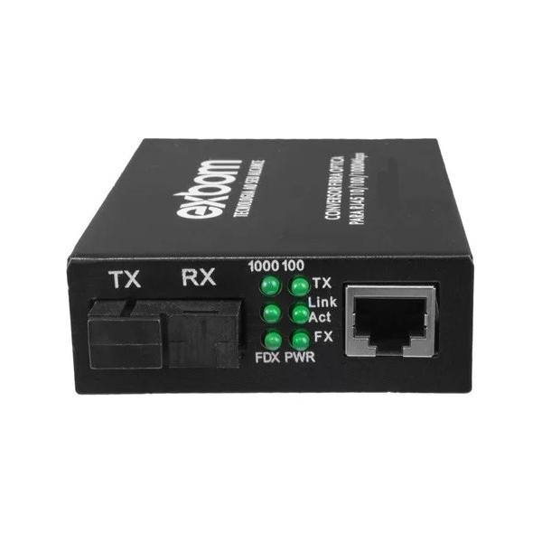 PAR DE CONVERSORES DE MIDIA FIBRA GIGABIT EXBOM ATE 120KM - PRETO