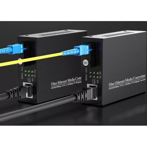 PAR DE CONVERSORES FIBRA OPTICA GIGABIT EXBOM ATE 5KM