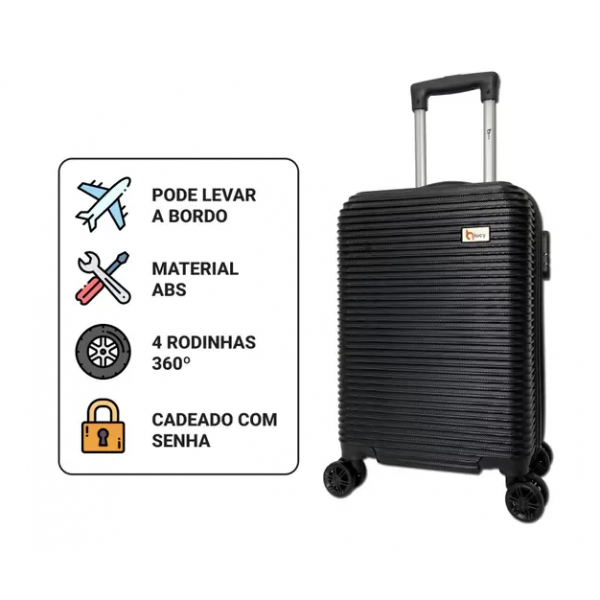 MALA DE VIAGEM 10KG PRETA C/ RODINHAS E CADEADO C/ SENHA (ANAC)