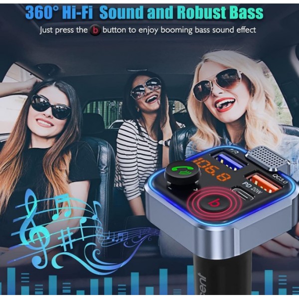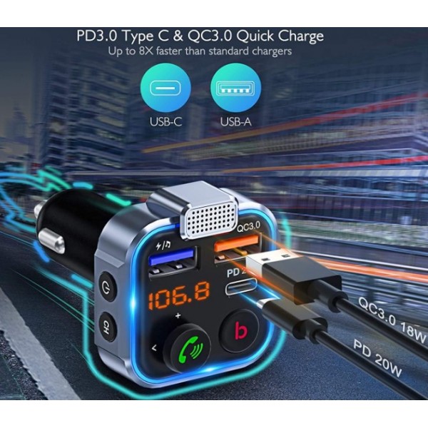 CARREGADOR VEICULAR LENCE C/ ADAPTADOR DDE FM BLUETOOTH USB-C