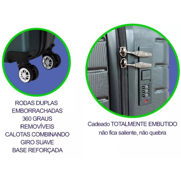 MALA DE BORDO VIAGEM PEQUENA 10L ABS RIGIDA C/ RODAS