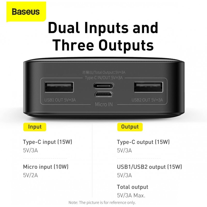 Carregador Portail Baseus Power Bank USB 30.000mAh 15W USB tipo C