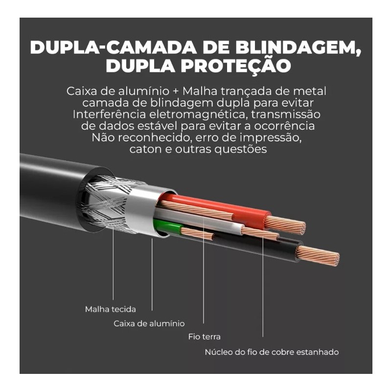 Cabo Impressora Scanner Universal USB Ugreen 15M