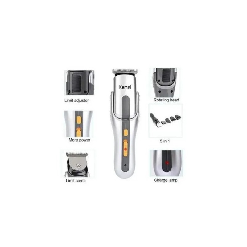 Maquina de Cortar Cabelo 8X1 Kemei 3W Profissional 3 Pentes