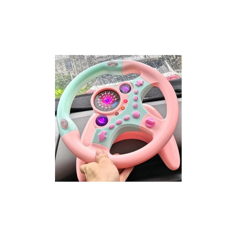 Brinquedo Volante Copiloto Simulaçao Led com Base Rosa