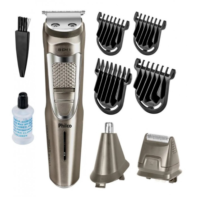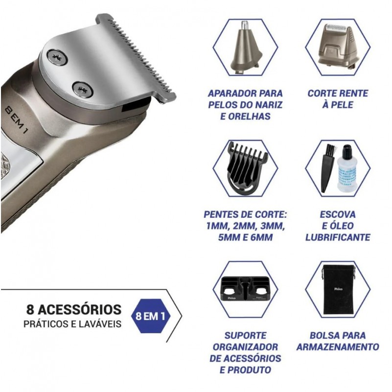 Aparador de Pelos Philco 8X1 Led 5 Pentes Prata