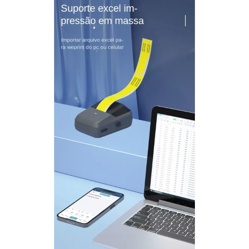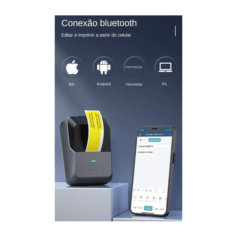 Mini Impressora Termica Portatil 203dpi Bluetooth USB Cinza