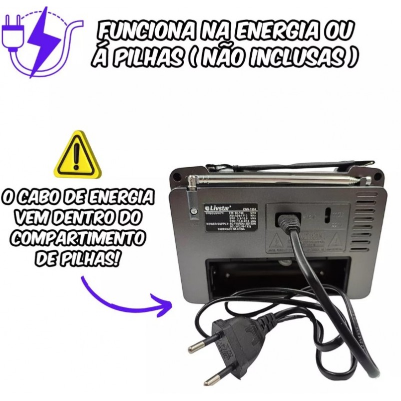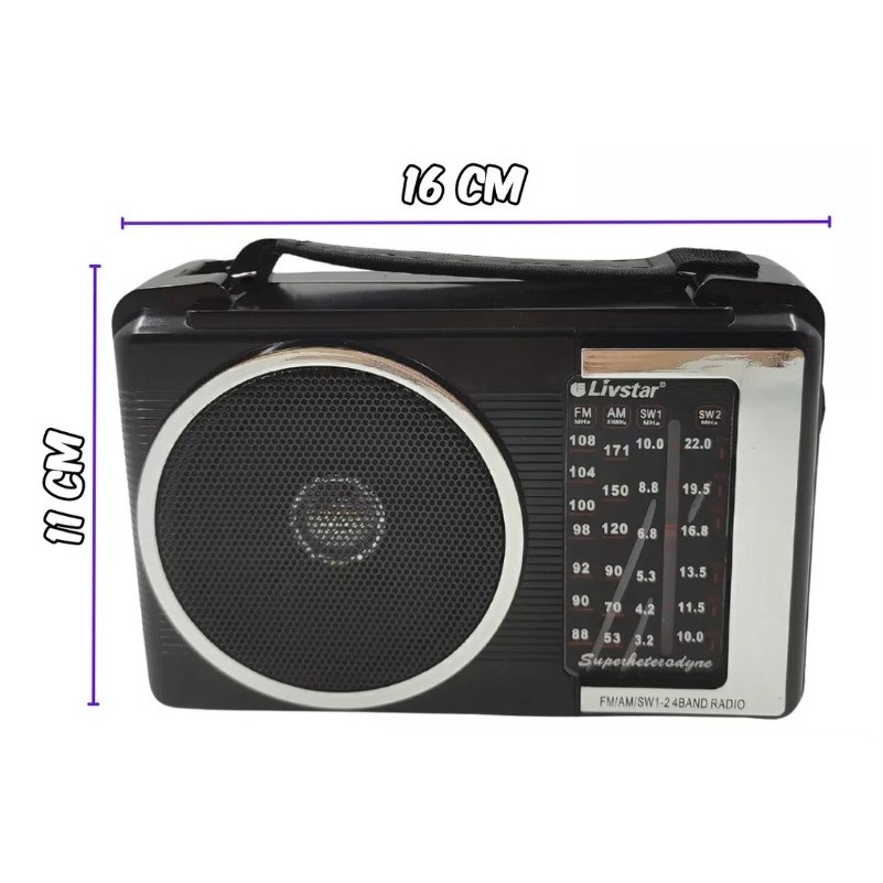 Radio AM FM Portatil 3W Analogico 4 Faixas com Alça de Transporte