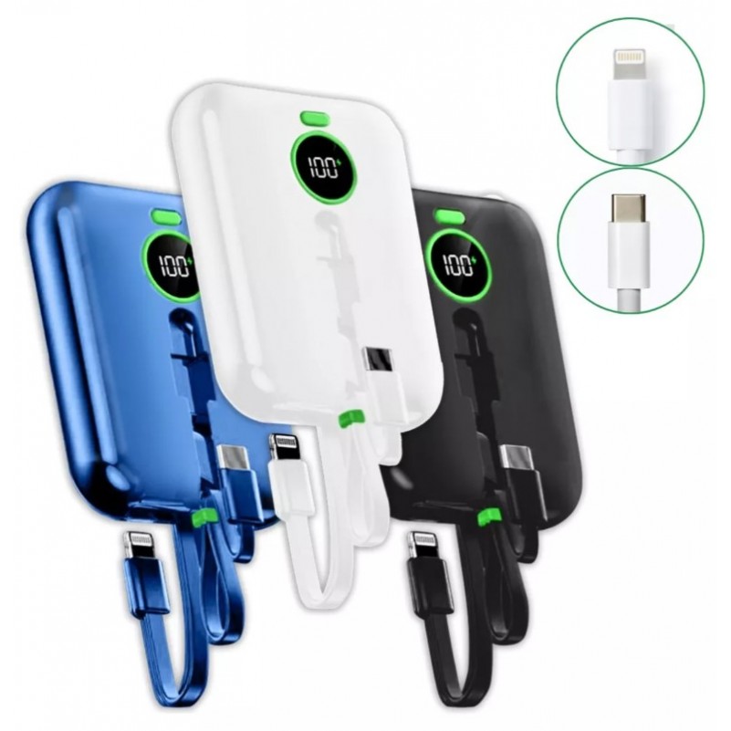 Mini Carregador Portatil USB 10.000 mAh Power Bank Lighting USB C