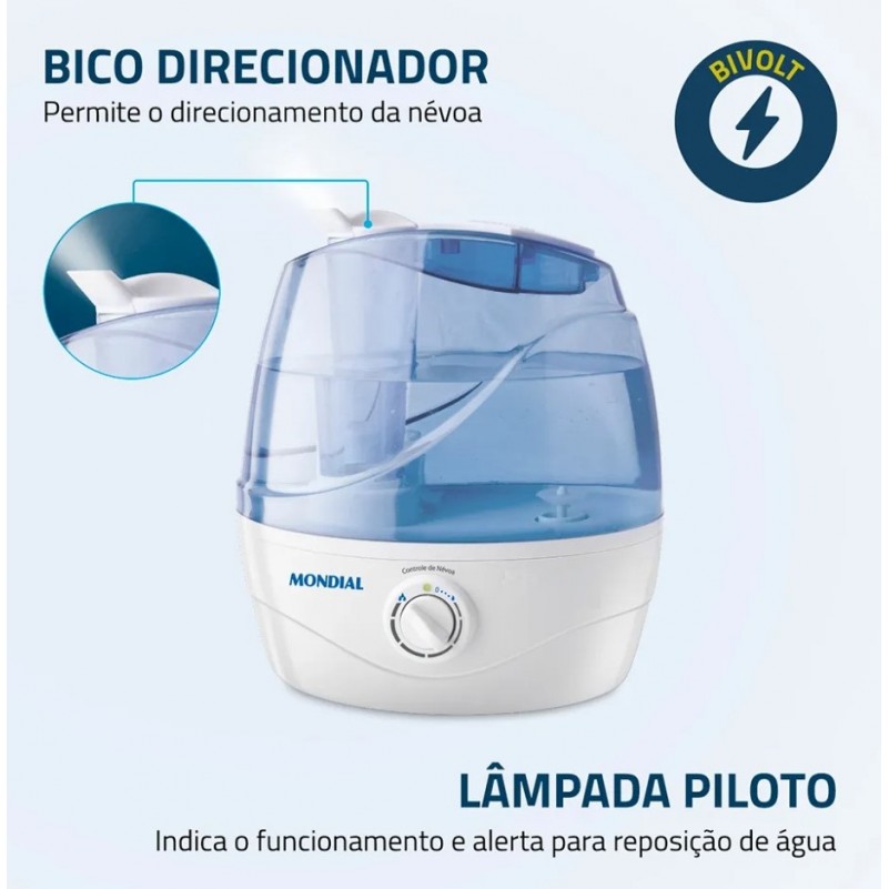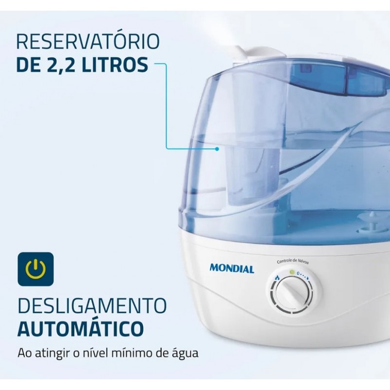 Umidificador de Ar Portatil Mondial 2.2L Ultrassonico Bivolt