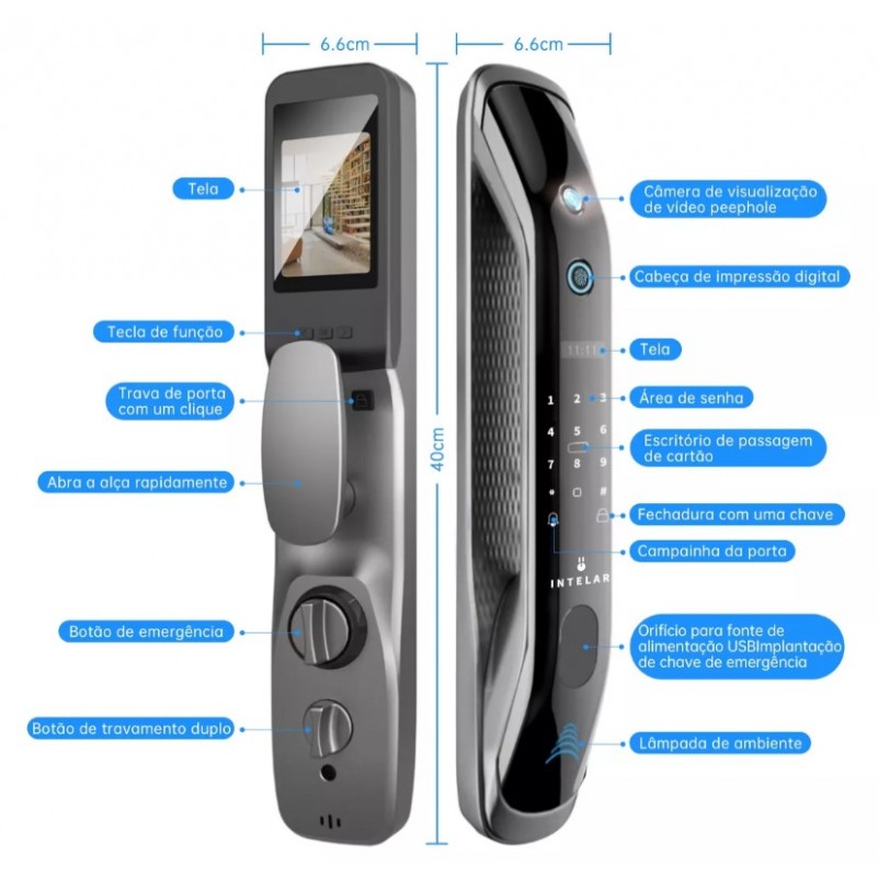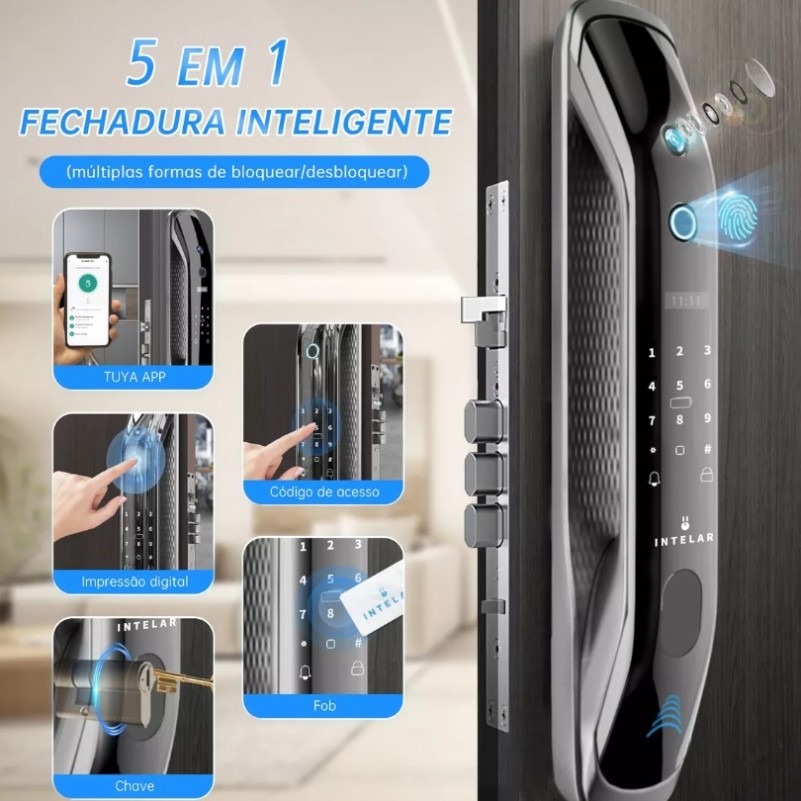 Fechadura Eletronica Digital Biometrica Wifi com Olho de Gato