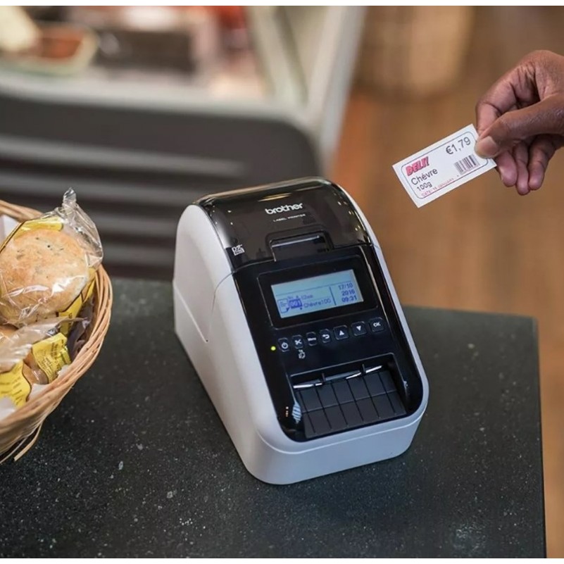 Impressora de etiquetas de alta velocidade, a é perfeita para área da saúde, varejo, logística e eventos, ajuda profissionais a imprimir rapidamente diversos tipos de etiquetas, como etiqueta para endereçamento, identificação de visitantes, ou organização de pastas. O modelo da Brother, possui conectividade Wireless, facilitando o uso e economizando espaço. Configure a etiqueta para impressão através de seu computador, tablet ou smartphone. Conectável ao computador via USB, Bluetooth, Wifi e Rede Cabeada para edição das etiquetas com o software gratuito P-Touch Editor, imprime código de barras, fotos e possui corte automático, o que otimiza muito o tempo do usuário. Transferência térmica utilizando os rolos DK. Imprime em preto e vermelho utilizando a etiqueta. A impressora chega a imprimir até 110 etiquetas por minuto, com texto em cor preta de 300dpi de resolução. Compatível com fitas DK, a proporciona uma grande variedade de opções de uso.