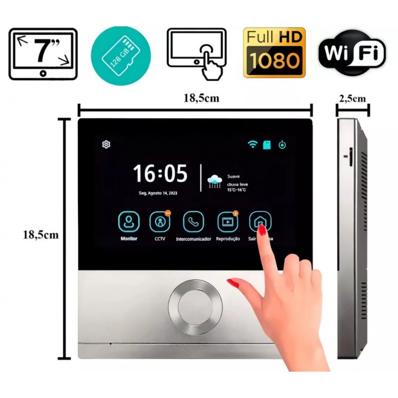 Campainha/Câmera: 6x15x2,5cm (LxAxP)