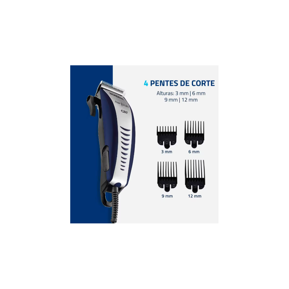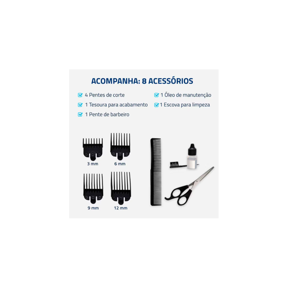 Maquina de Cortar Cabelo Mondial Lâminas em aço Inox 4 Pentes