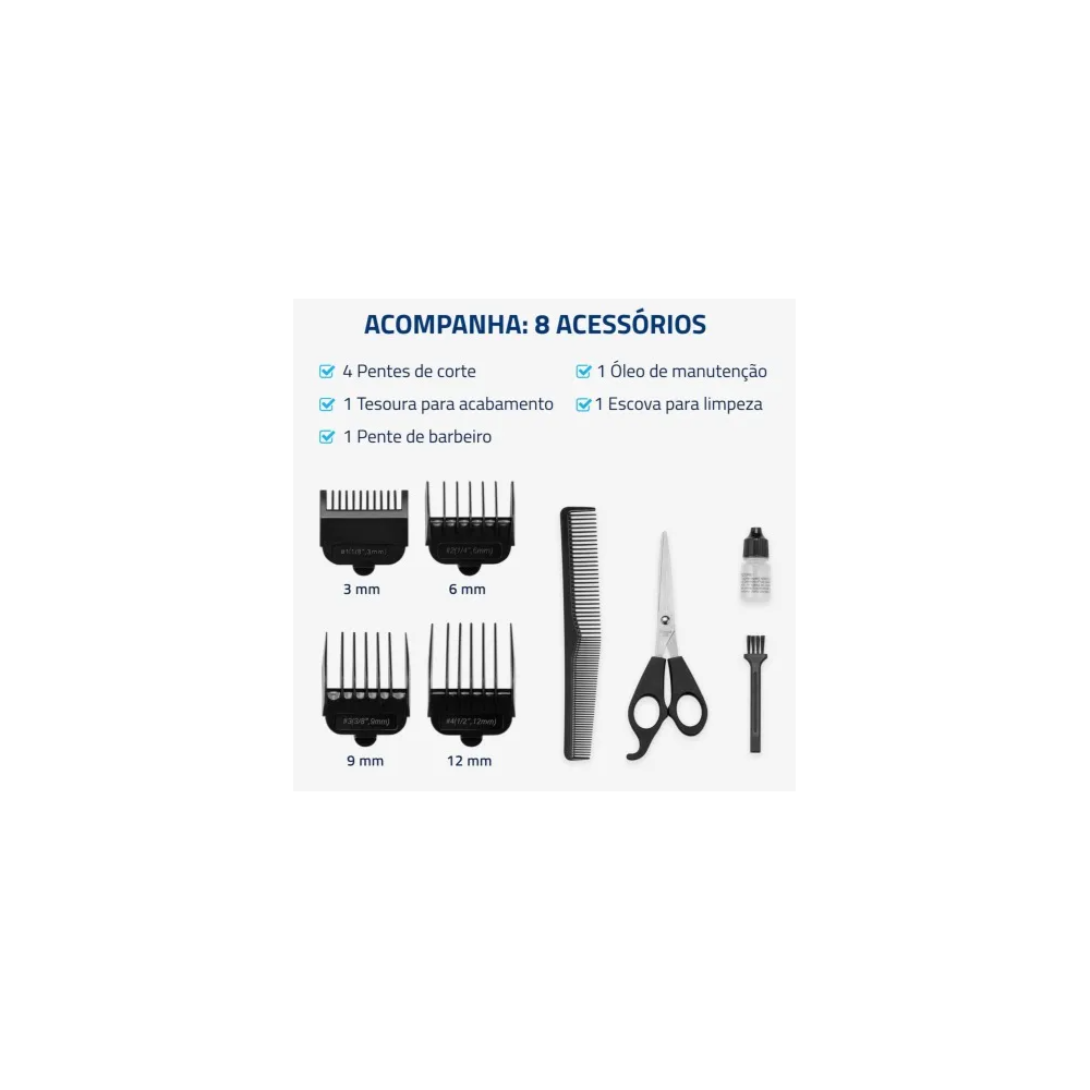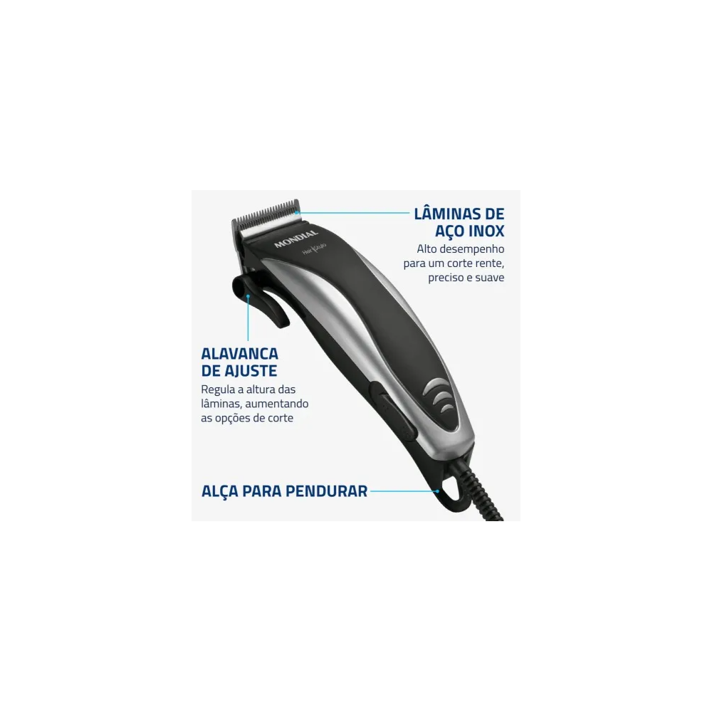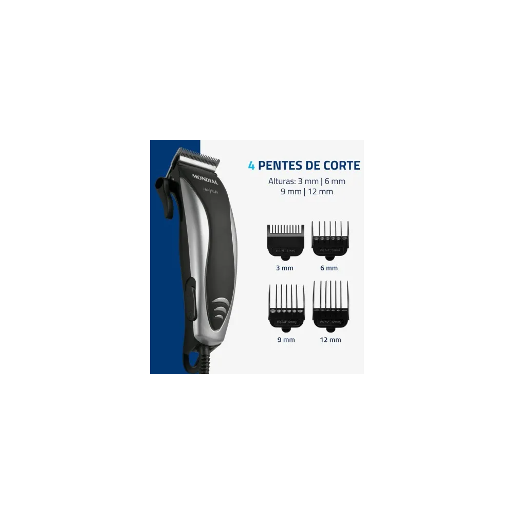 Maquina Cortar Cabelos Mondial 4 Pentes Silver Black