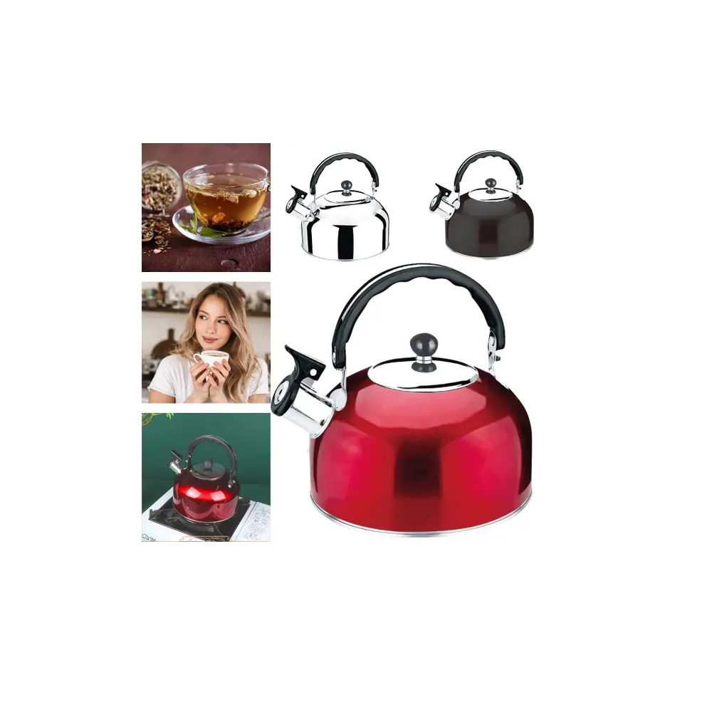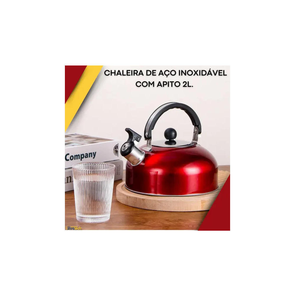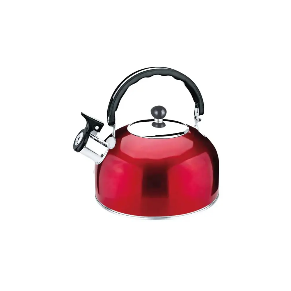 Chaleira para fogao a gas com Apito em Inox 2L Vermelha