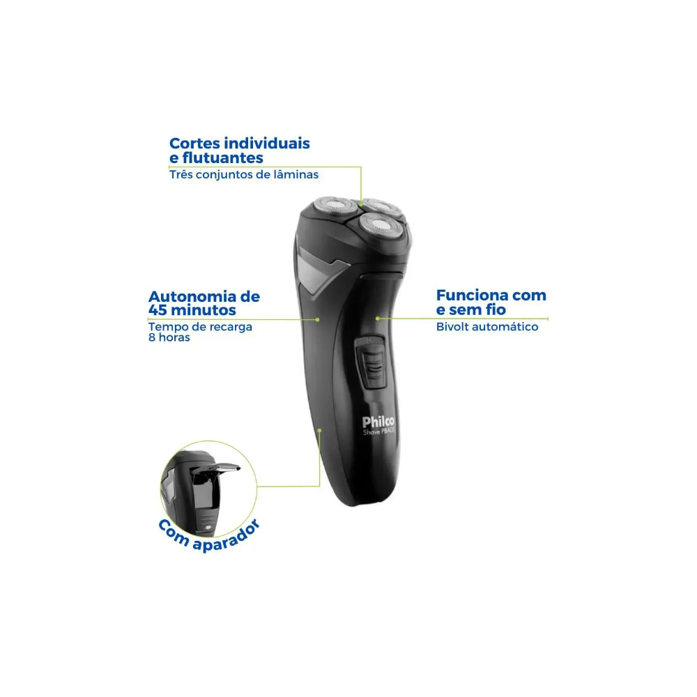 Barbeador Portatil Recarregavel Philco sem Fio Bivolt Preto