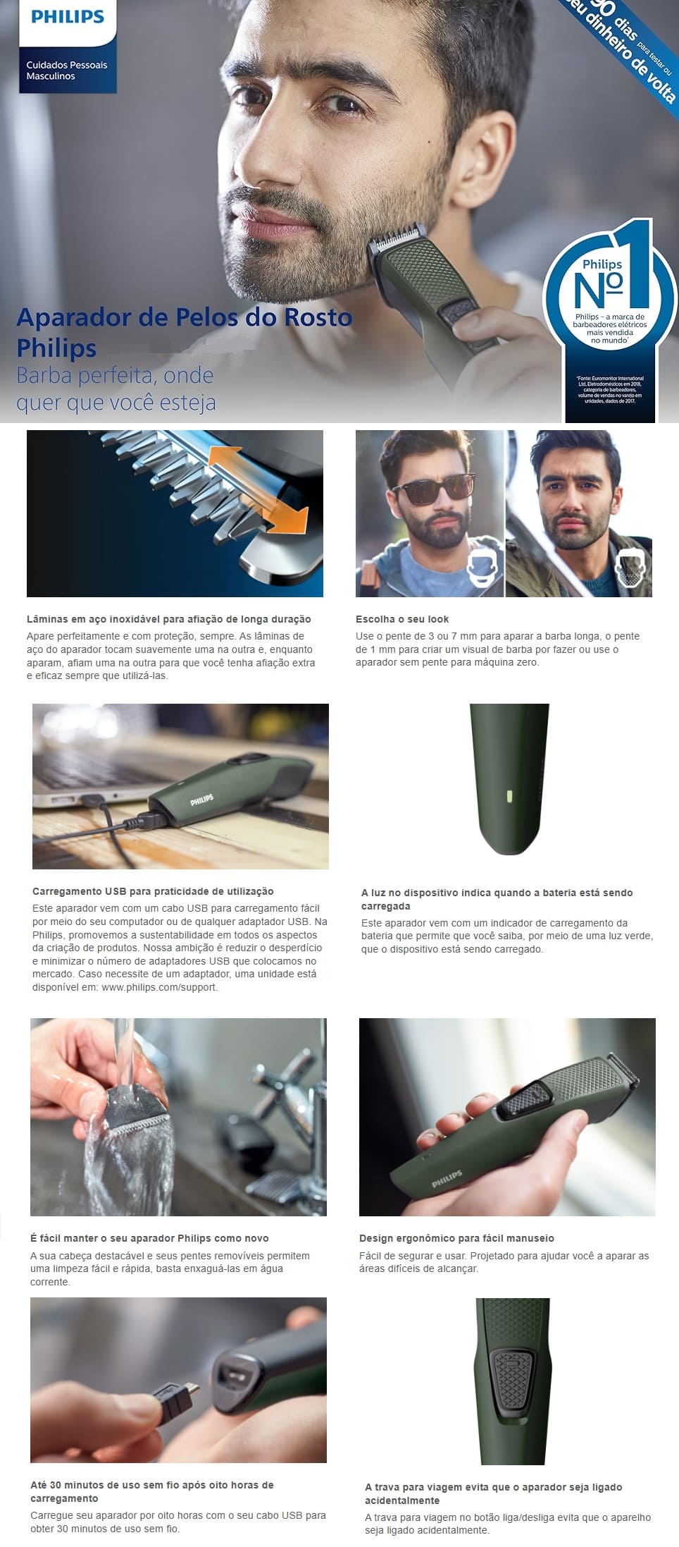 Barbeador sem Fio Dual Pente Lamina Autoafiaveis Verde Bivolt