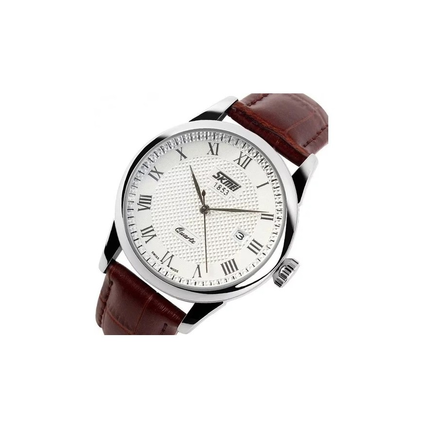 RELOGIO SKMEI ANALOGICO VIDRO CRISTAL COURO