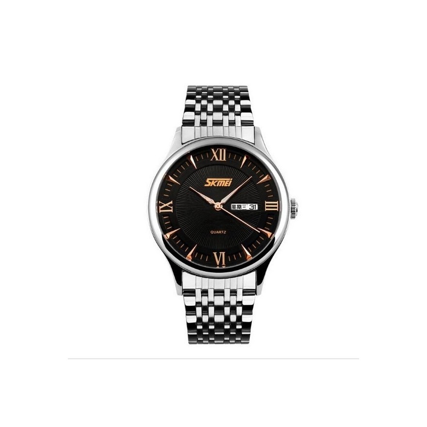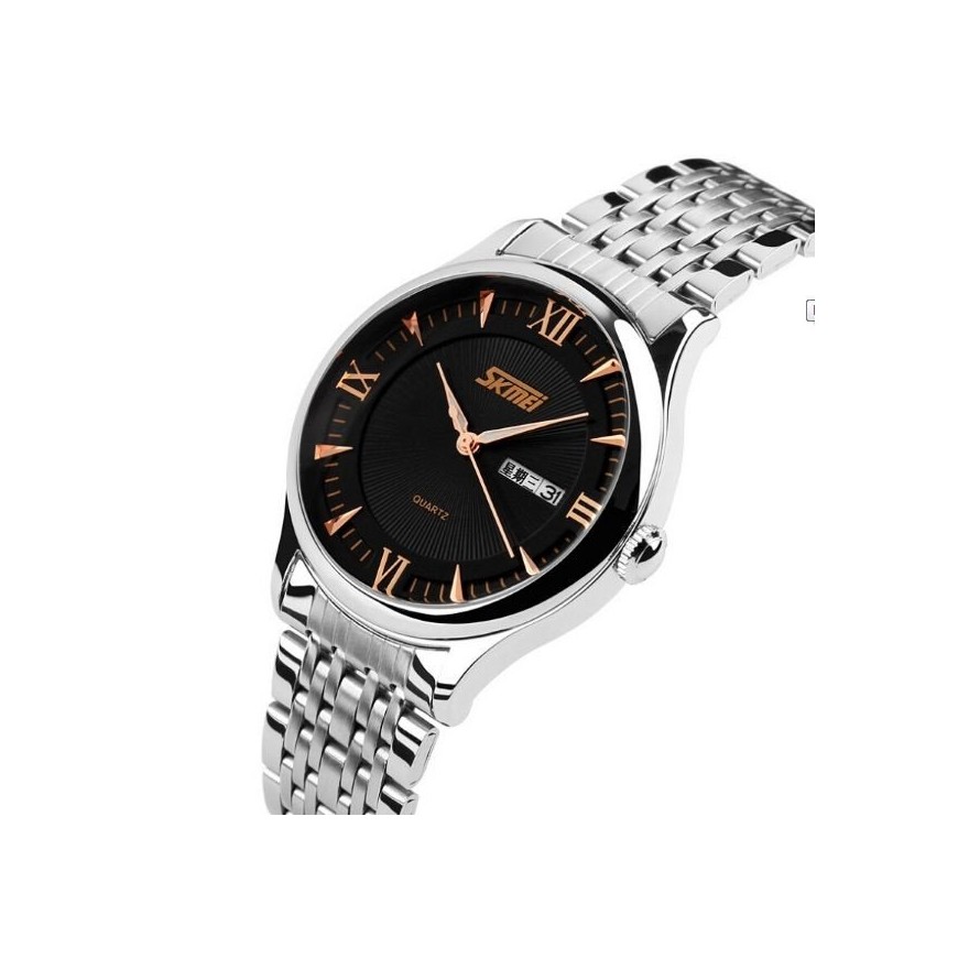 RELOGIO CASUAL SKMEI PRATA C/ PRETO MOSTRADOR DOURADO