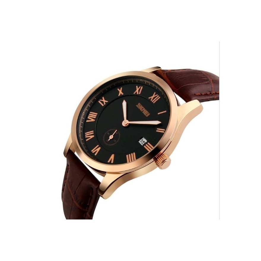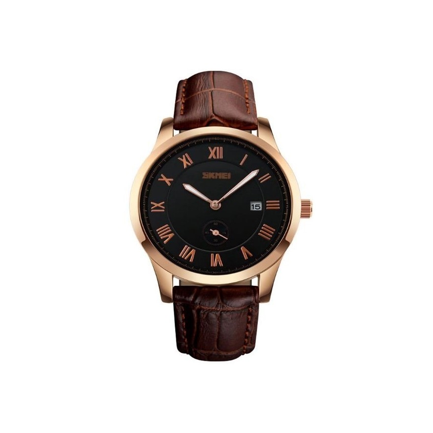 RELOGIO CASUAL SKMEI EM CRISTAL GOLDEN PULSEIRA DE COURO - ORIGINAL
