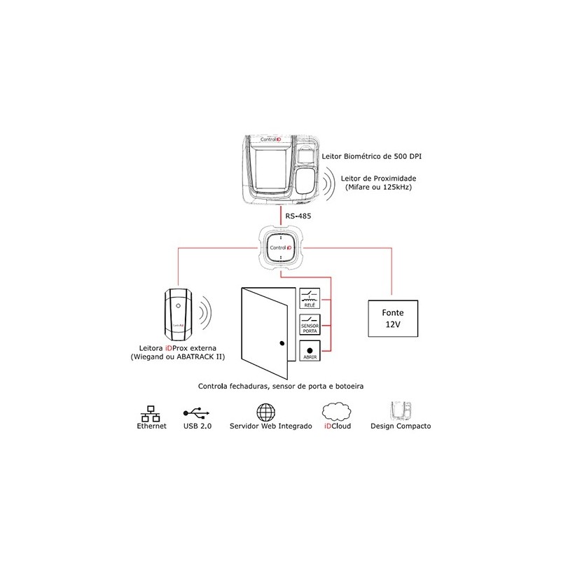 Porteiro Controlador de Acesso RFID com Biometria Display Touch