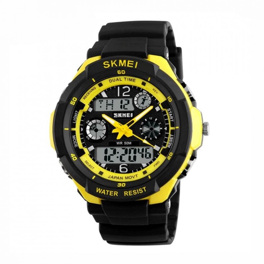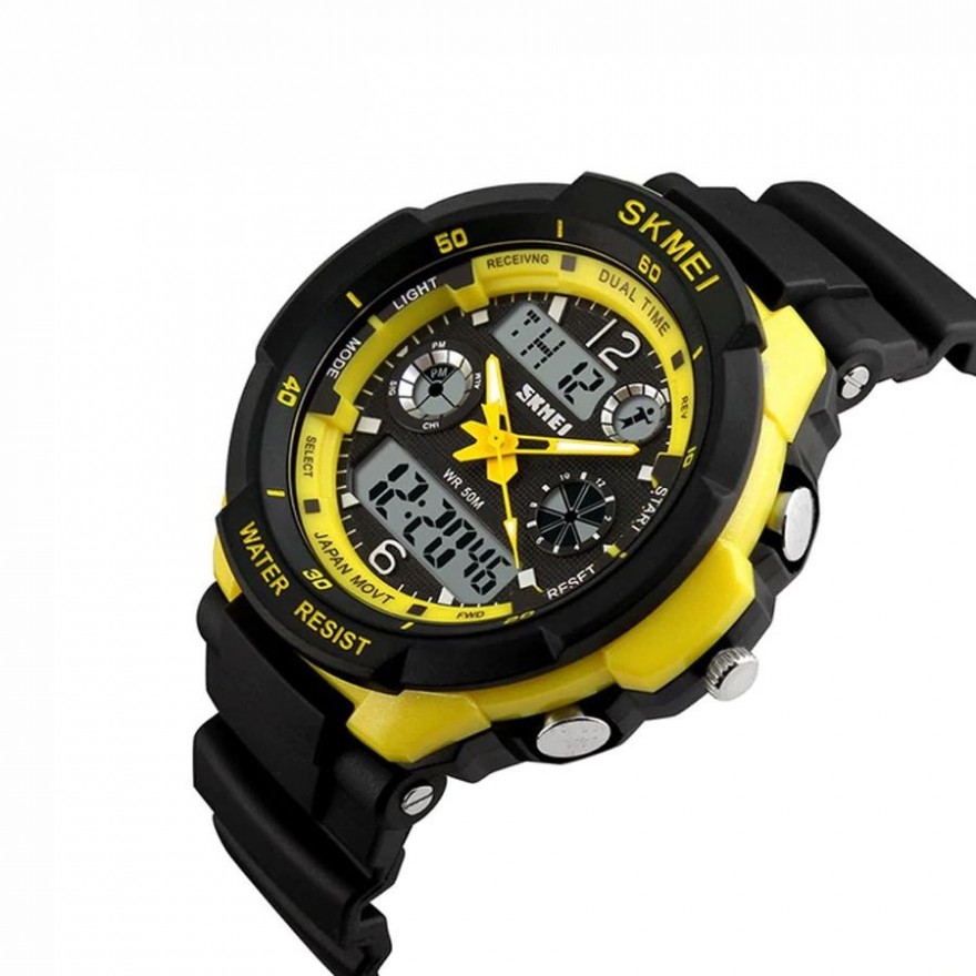 RELÓGIO SKMEI SHOCK ADRIAN VIDRO EM CRISTAL PRETO/AMARELO - ORIGINAL