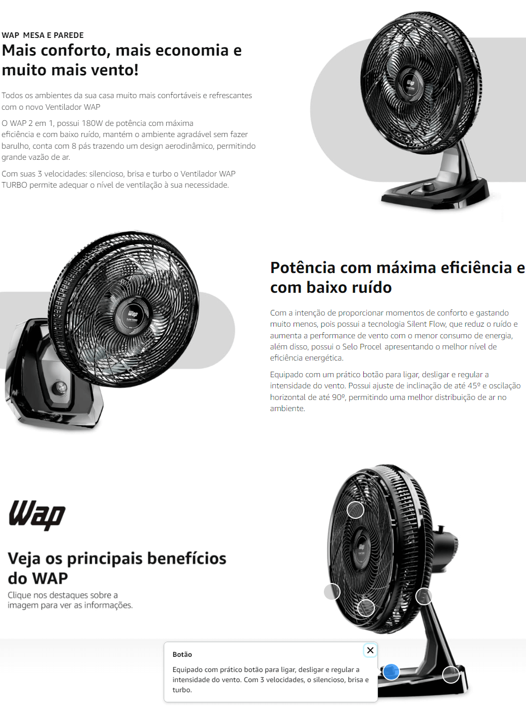 Ventilador 2X1 Turbo Wap 180W 50cm Mesa e Parede 8 Pas