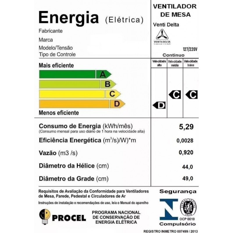 Ventilador de Mesa 50cm VentiDelta 170W 3 Velocidades Bivolt
