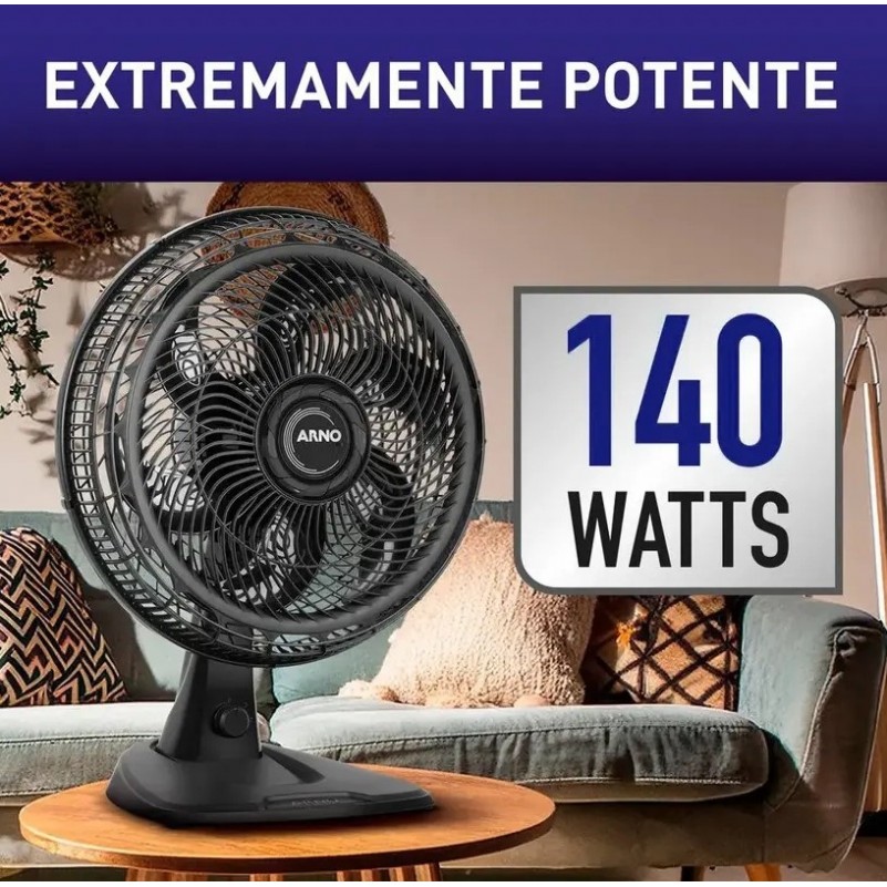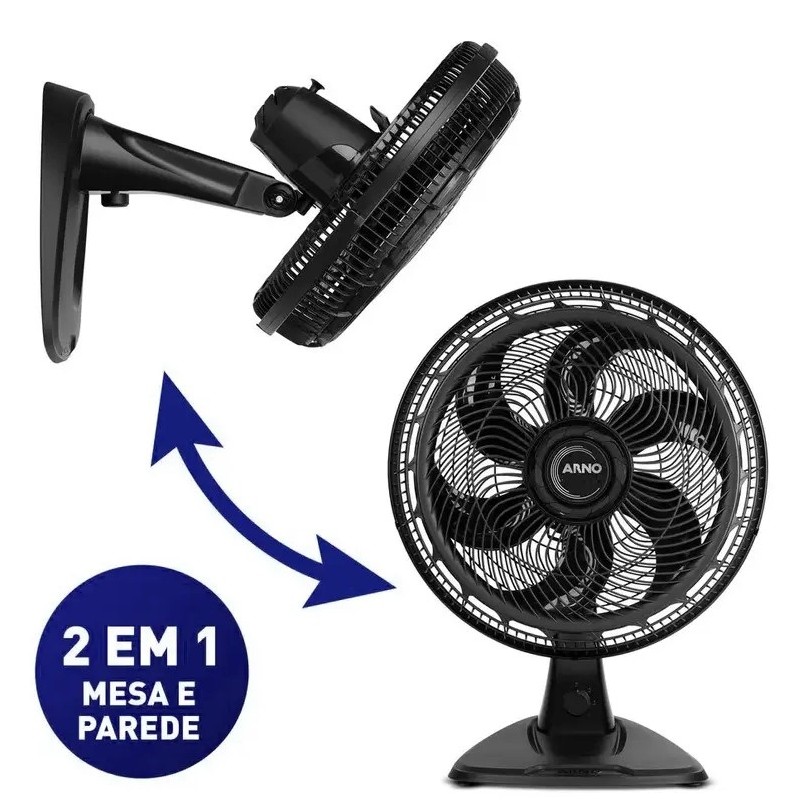 Ventilador de Mesa 2X1 Arno 140W 30 Velocidades 6 Pas Preto