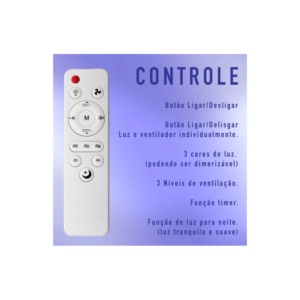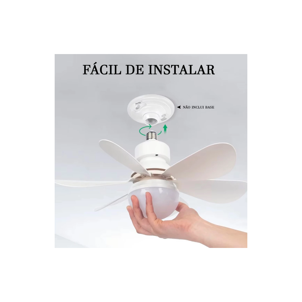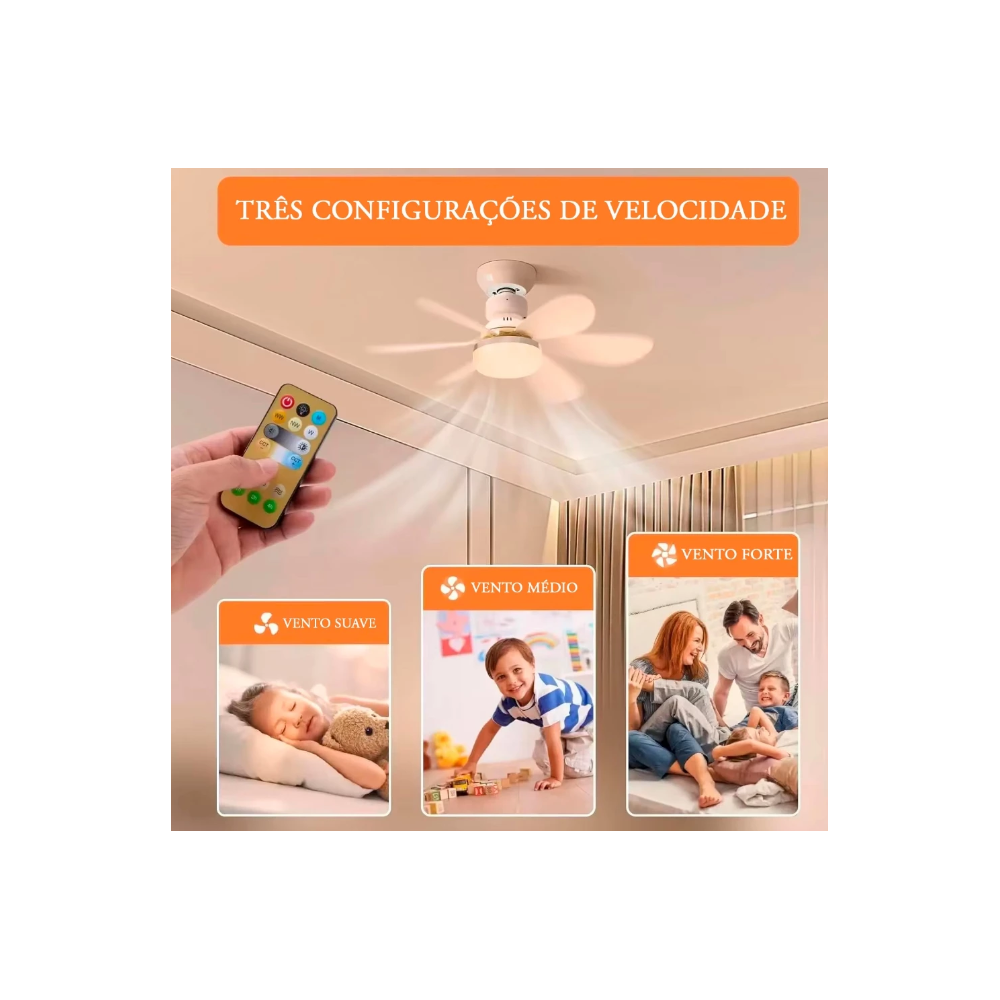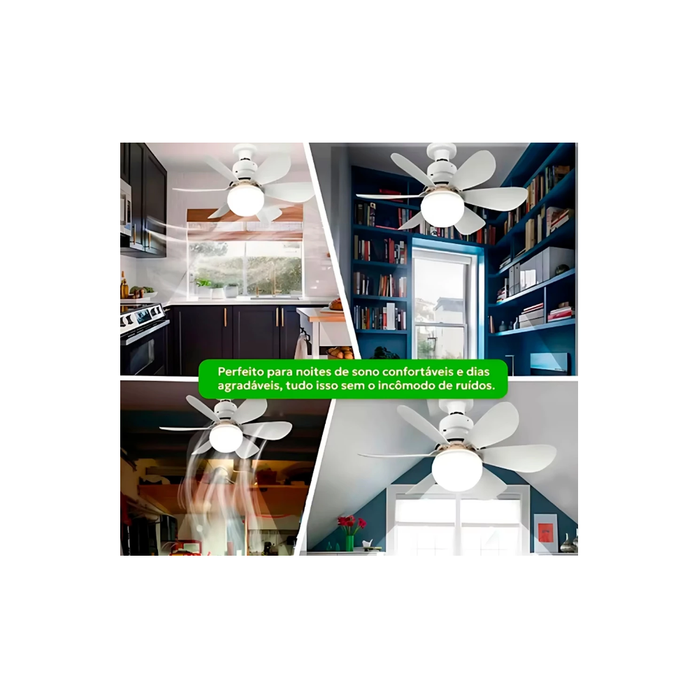 Mini Ventilador de Teto com Lampada RGB 60W Controle Remoto