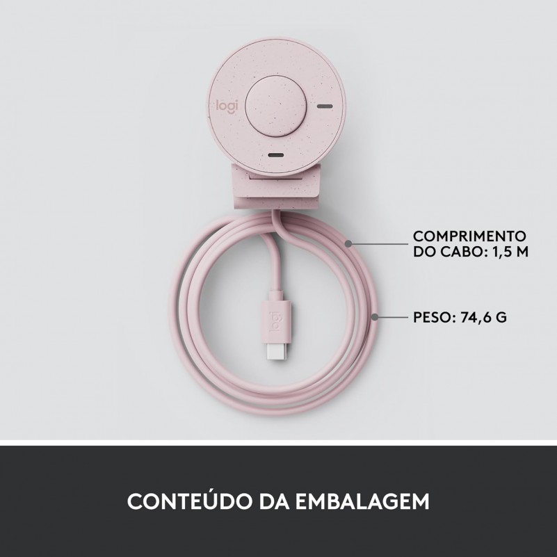 Webcam 2Mpx Full HD Logitech AutoFoco Microfone Reduçao Ruido USB C