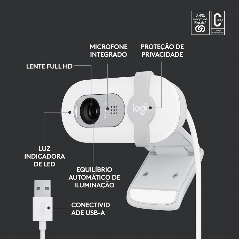 Webcam Full HD Logitech AutoFoco com Microfone Integrado USB
