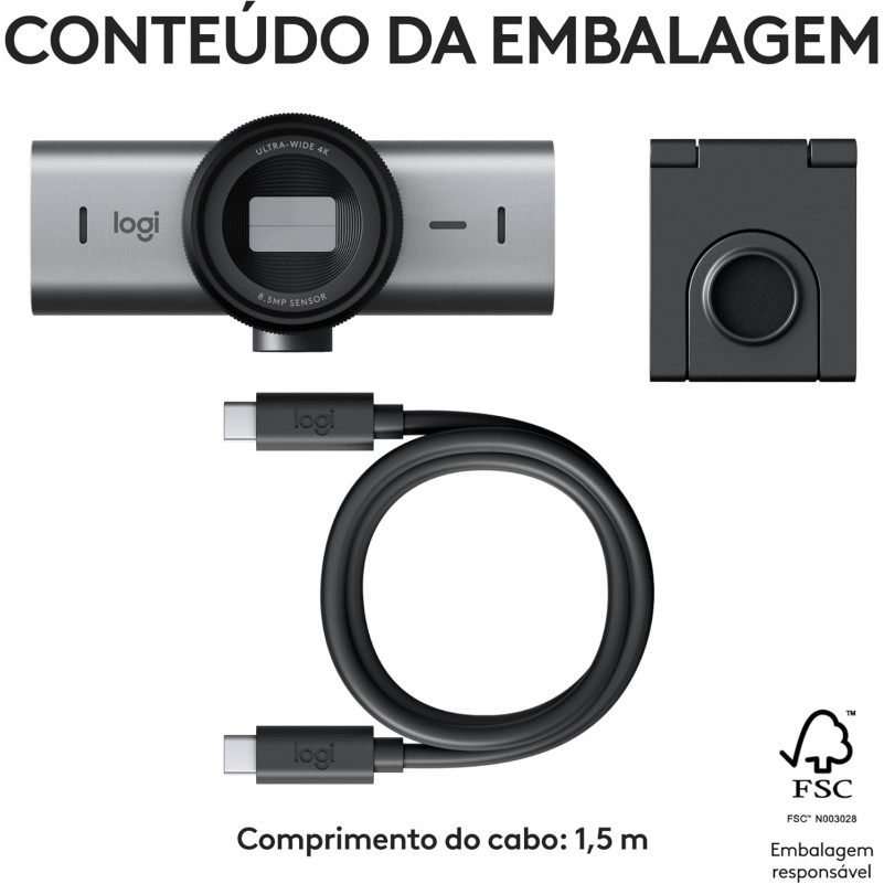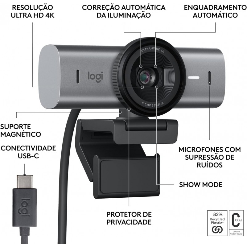 Webcam 4K UHD Logitech com Microfone Reduçao de Ruido USB C