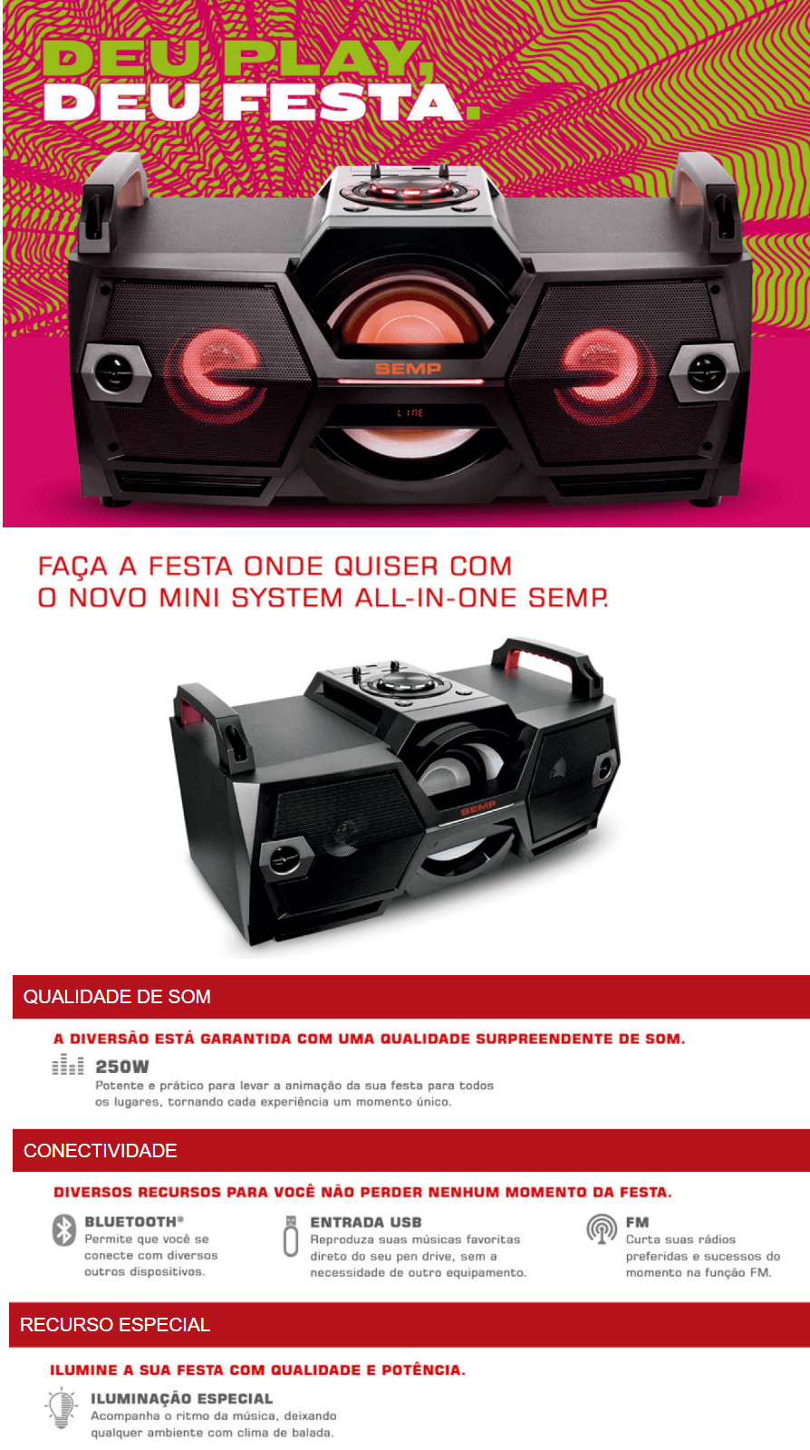 MINI SYSTEM SEMP TOSHIBA 250W USB FM BLUETOOTH - BIVOLT