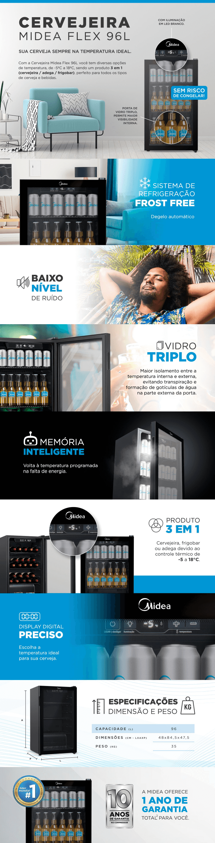 CERVEJEIRA MIDEA EXPOSITORA FRIGOBAR 95L FROST FREE REFRIGERADA POR COMPRESSOR - 95W