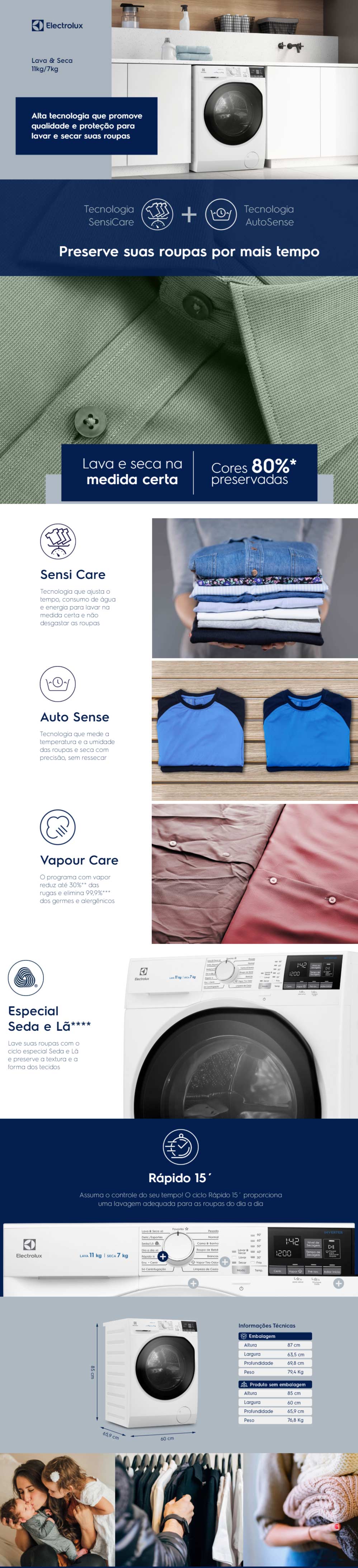 LAVADORA E SECADORA ELECTROLUX 11KG 15 PROGRAMAS
