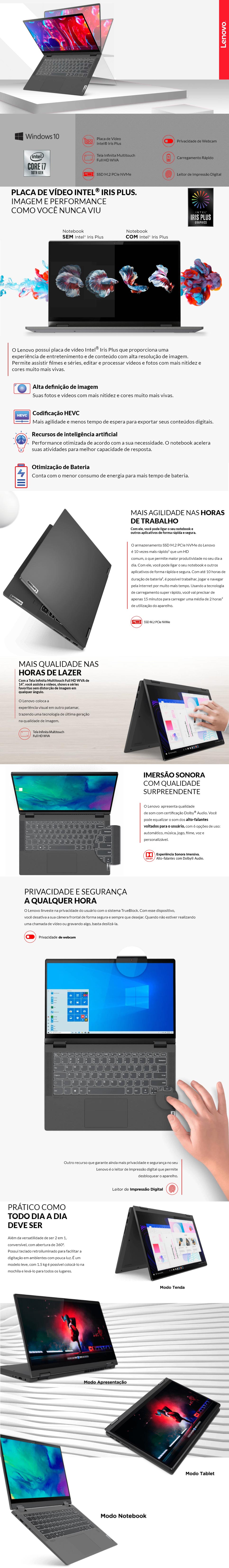 NOTEBOOK HIBRIDO MODO TABLET LENOVO CORE I7 HD 256GB SSD TELA 15 WIN 10 8GB RAM USB 3.0 HDMI