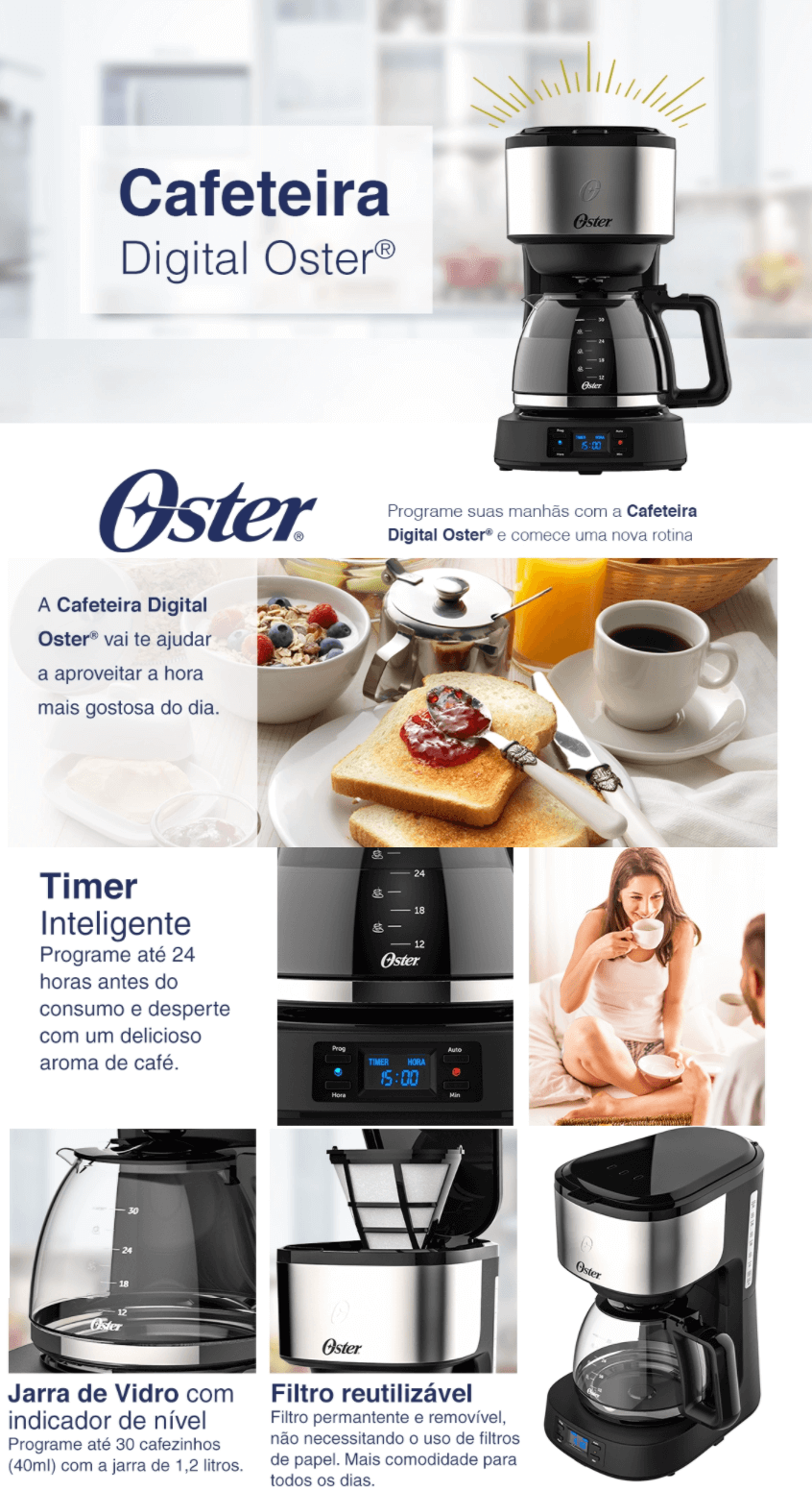 CAFETEIRA OSTER DIGITAL ELLEGANCE INOX PRETA 800W PROGRAMAVEL