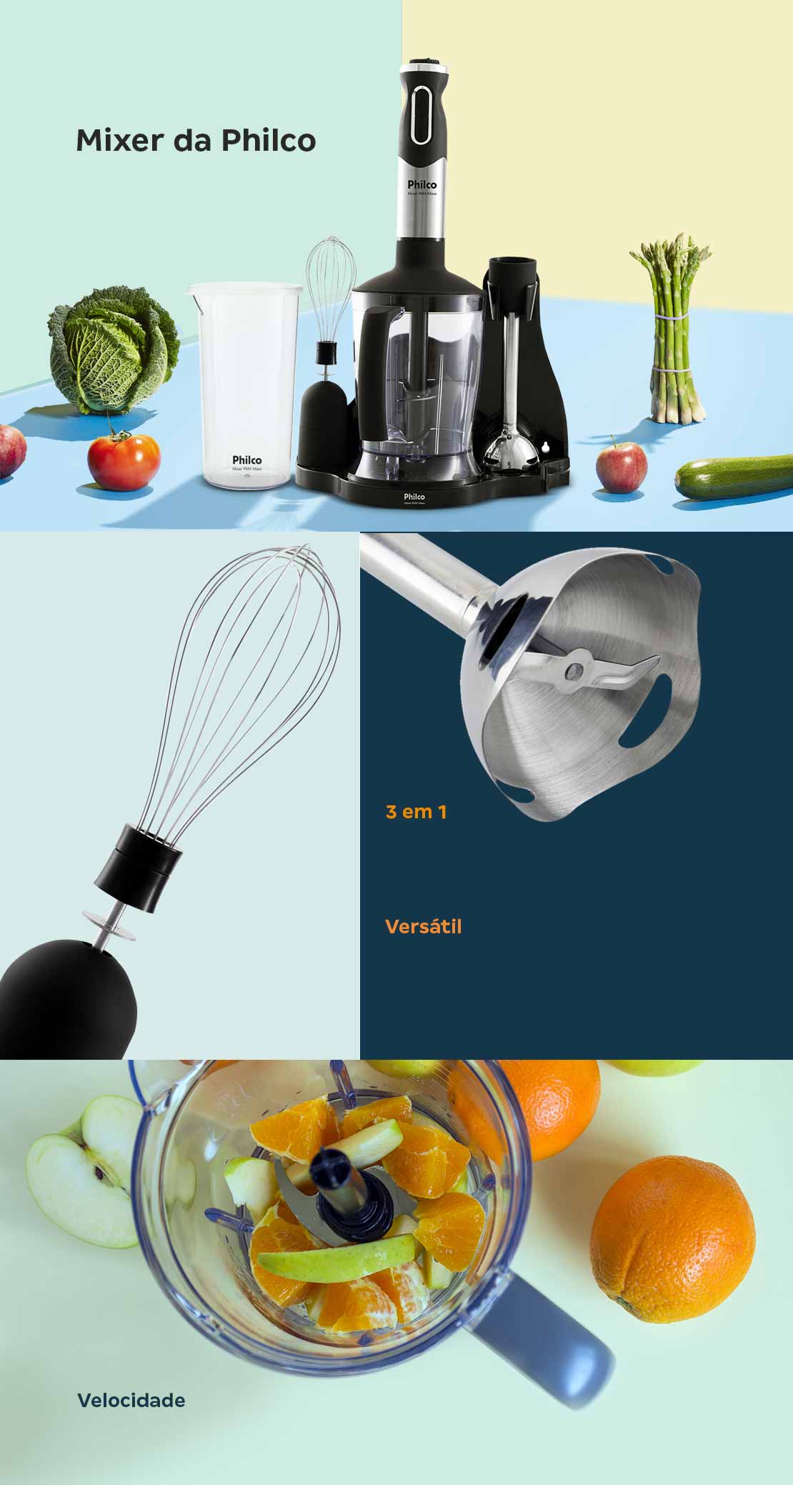 MIXER PHILCO 3X1 C/ TRITURADOR E BATEDOR - PRETO - 500W