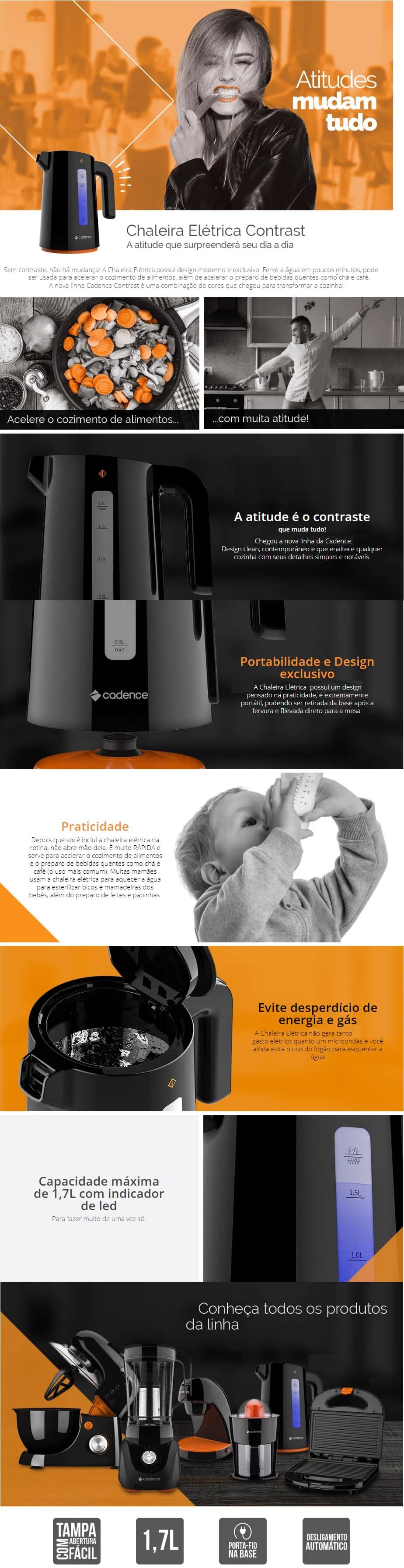 CHALEIRA ELETRICA CADENCE PRIME 1.7L 1200W