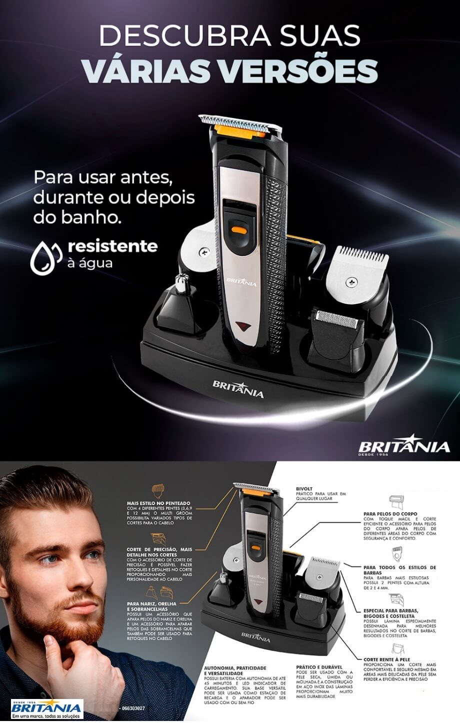APARADOR DE PELOS BRITANIA 12X1 SEM FIO - PRETA
