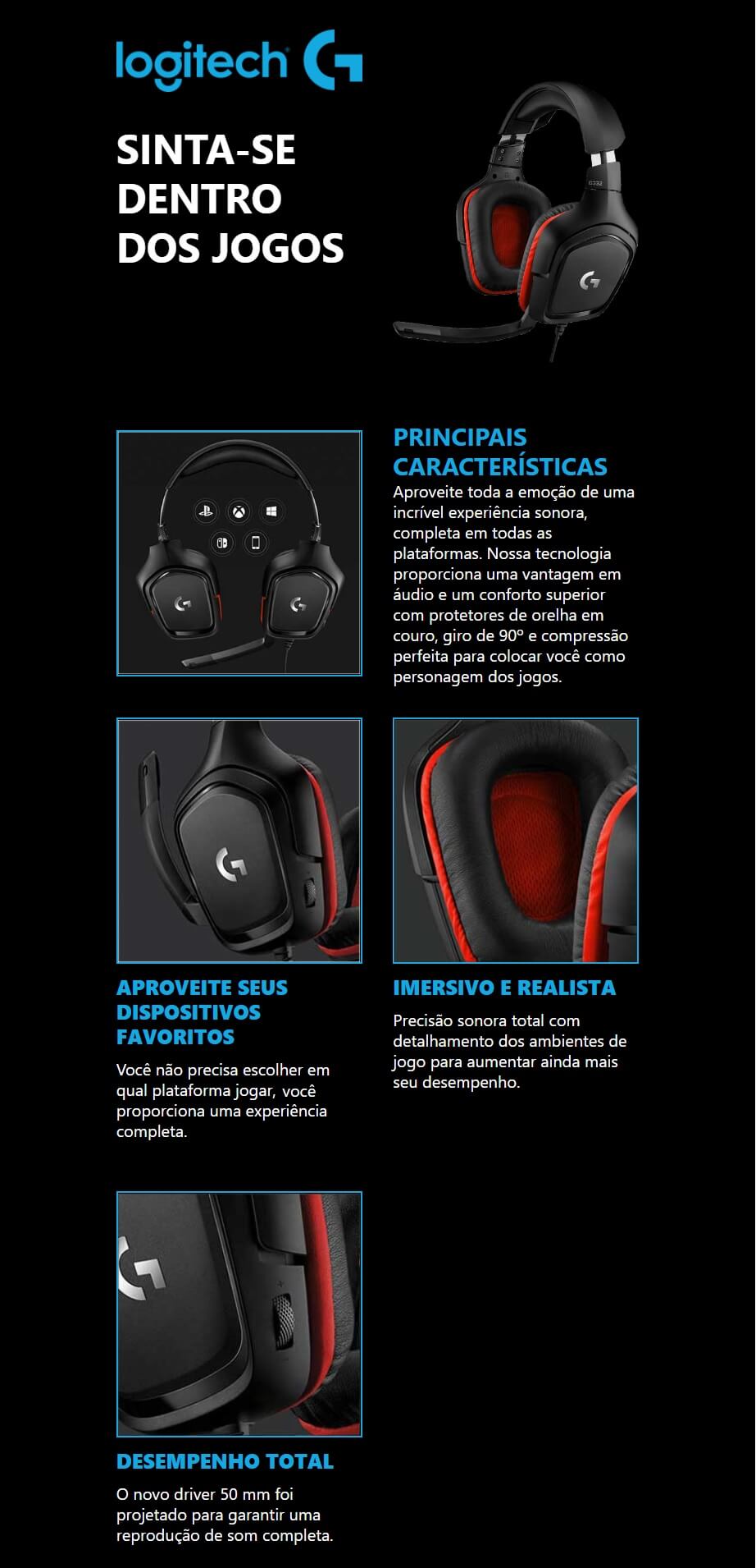 FONE DE OUVIDO HEADSET GAMER LOGITECH STEREO - PRETO