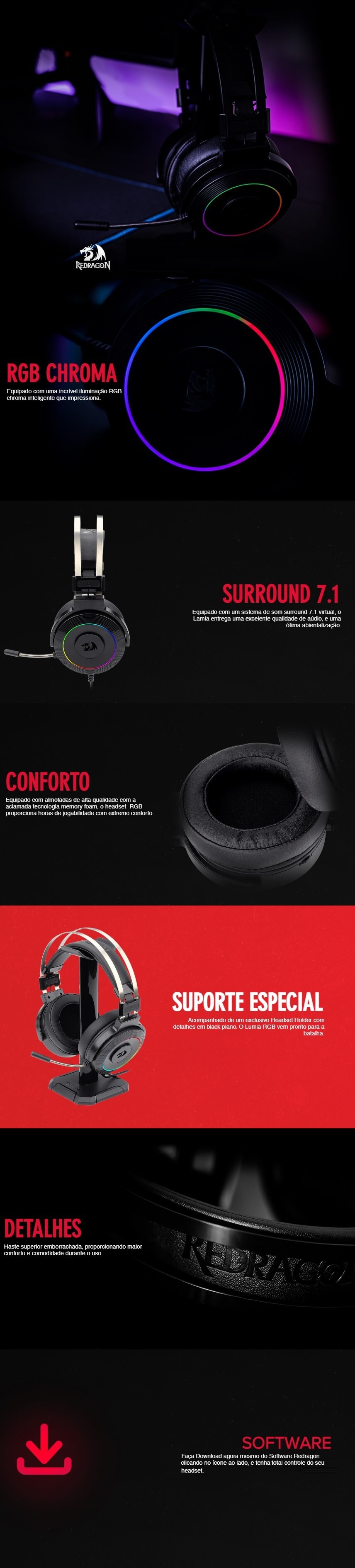 FONE DE OUVIDO HEADSET GAMER DRAGON RGB SURROUND 7.1 DRIVERS - PRETO