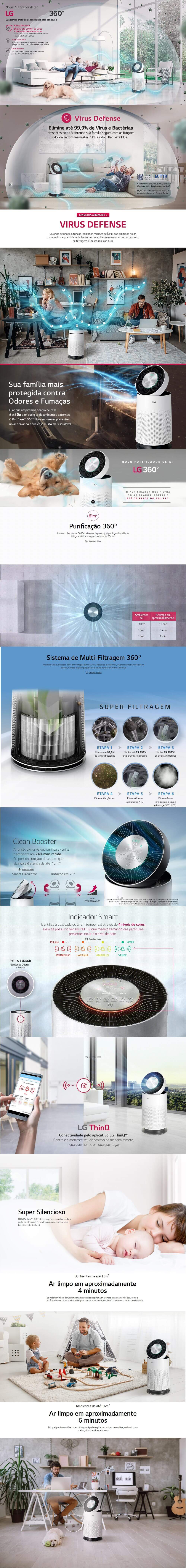 PURIFICADOR DE AR LG 360 GRAUS C/ FILTRO E VIRUS DEFENSE 110V - BRANCO