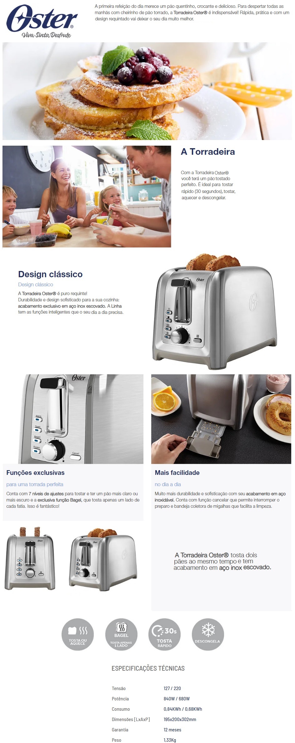 Torradeira Oster 7 Ajustes De Tostar Inox Cinza