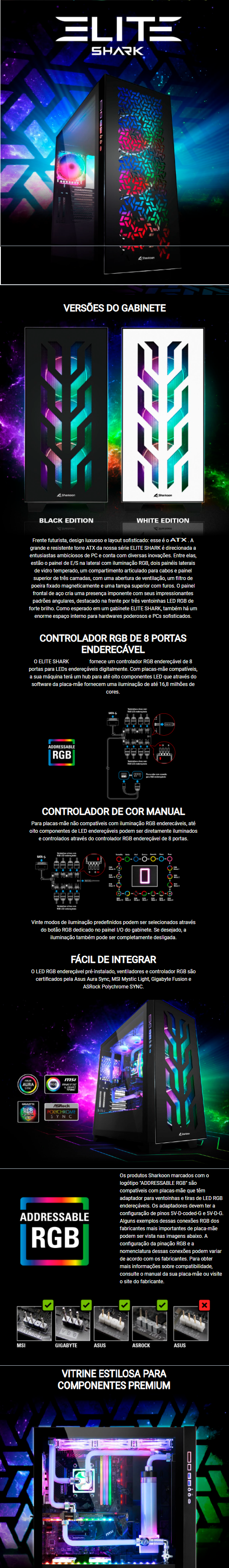 GABINETE GAMER SHARK C/ VIDRO - BRANCO RGB