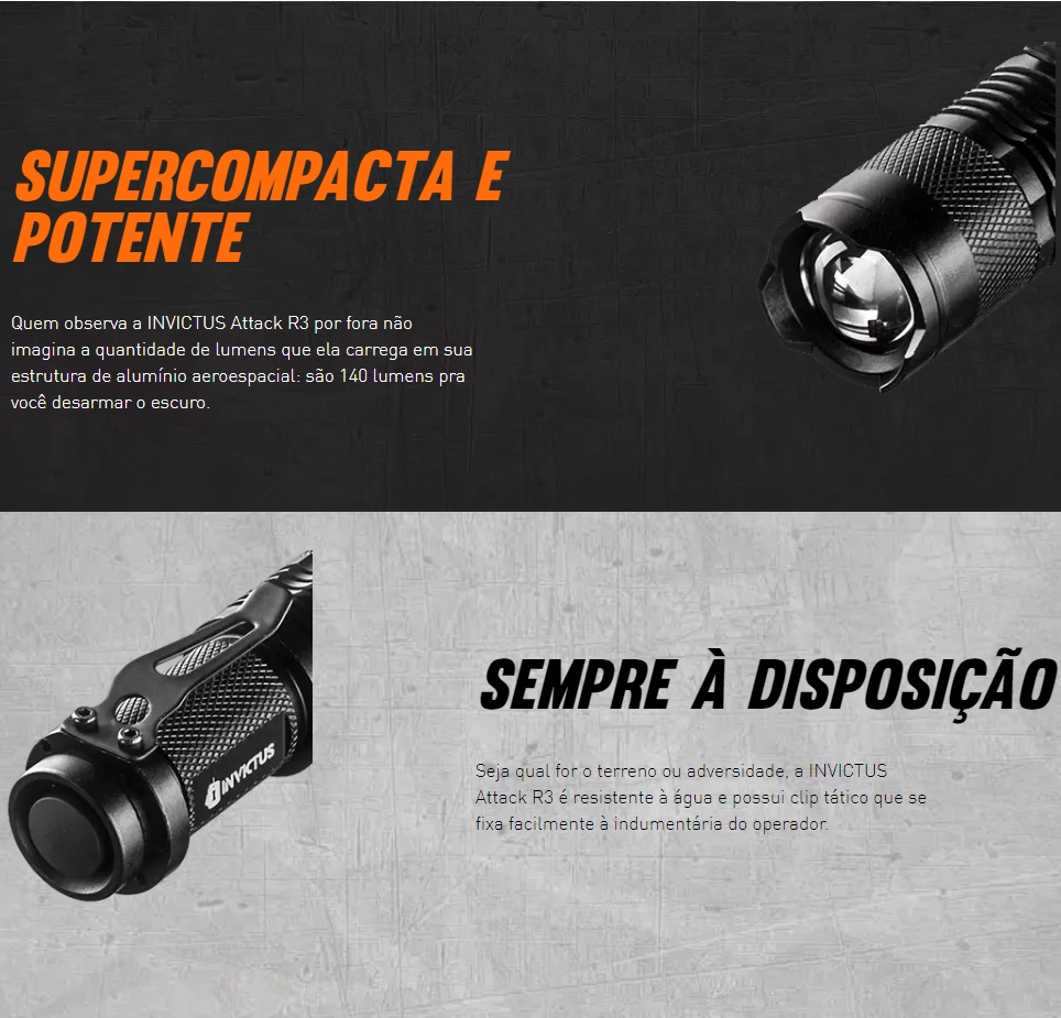 LANTERNA INVICTUS ATTACK - RECARREGAVEL - RESISTENTE A AGUA