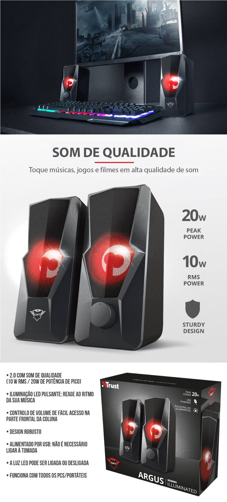 CAIXA DE SOM GAMER 10W - 2.0 SPEAKER - PRETA