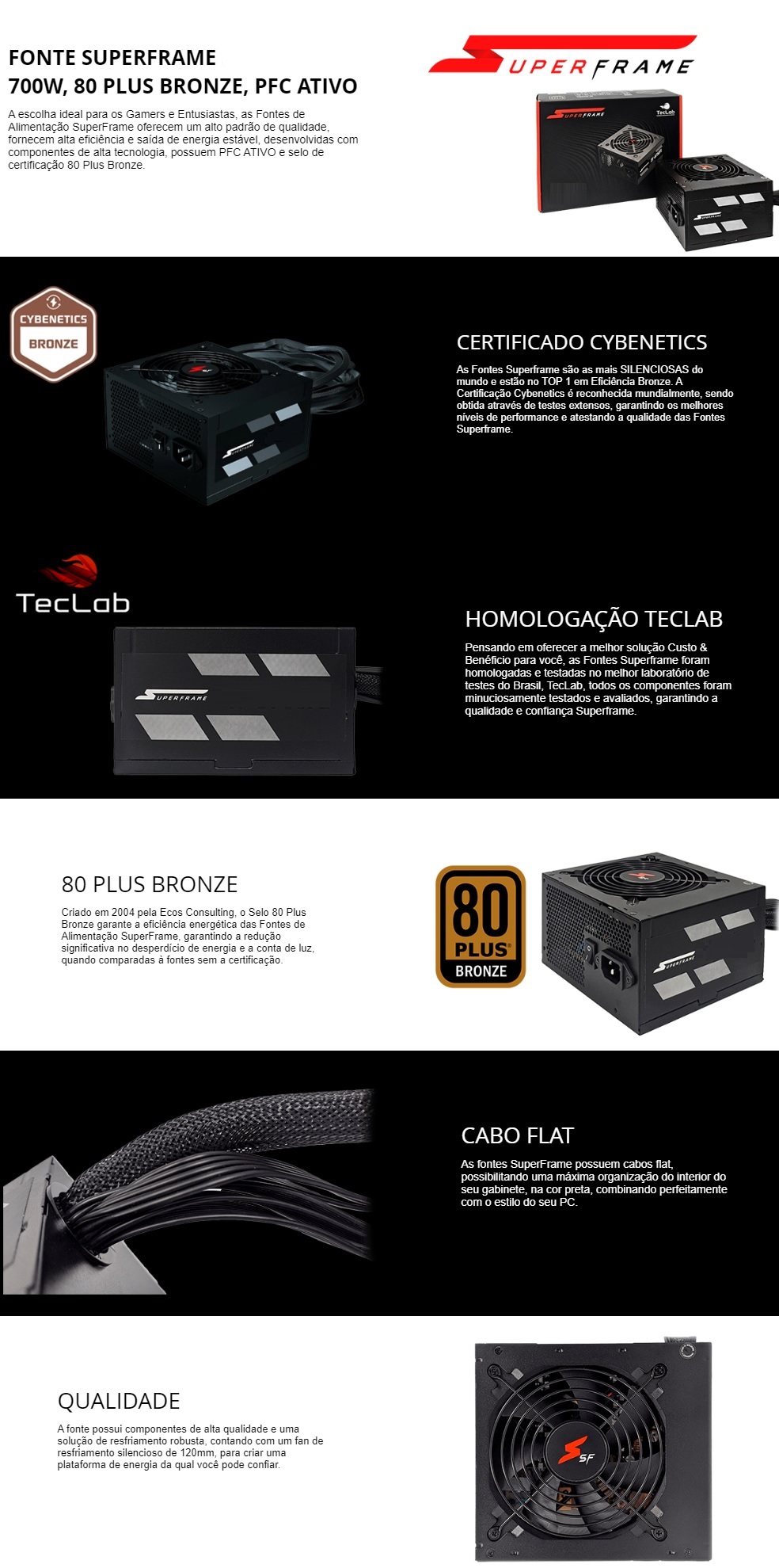 FONTE ATX 700W - 80 PLUS BRONZE - C/ PFC ATIVO CABO FLAT